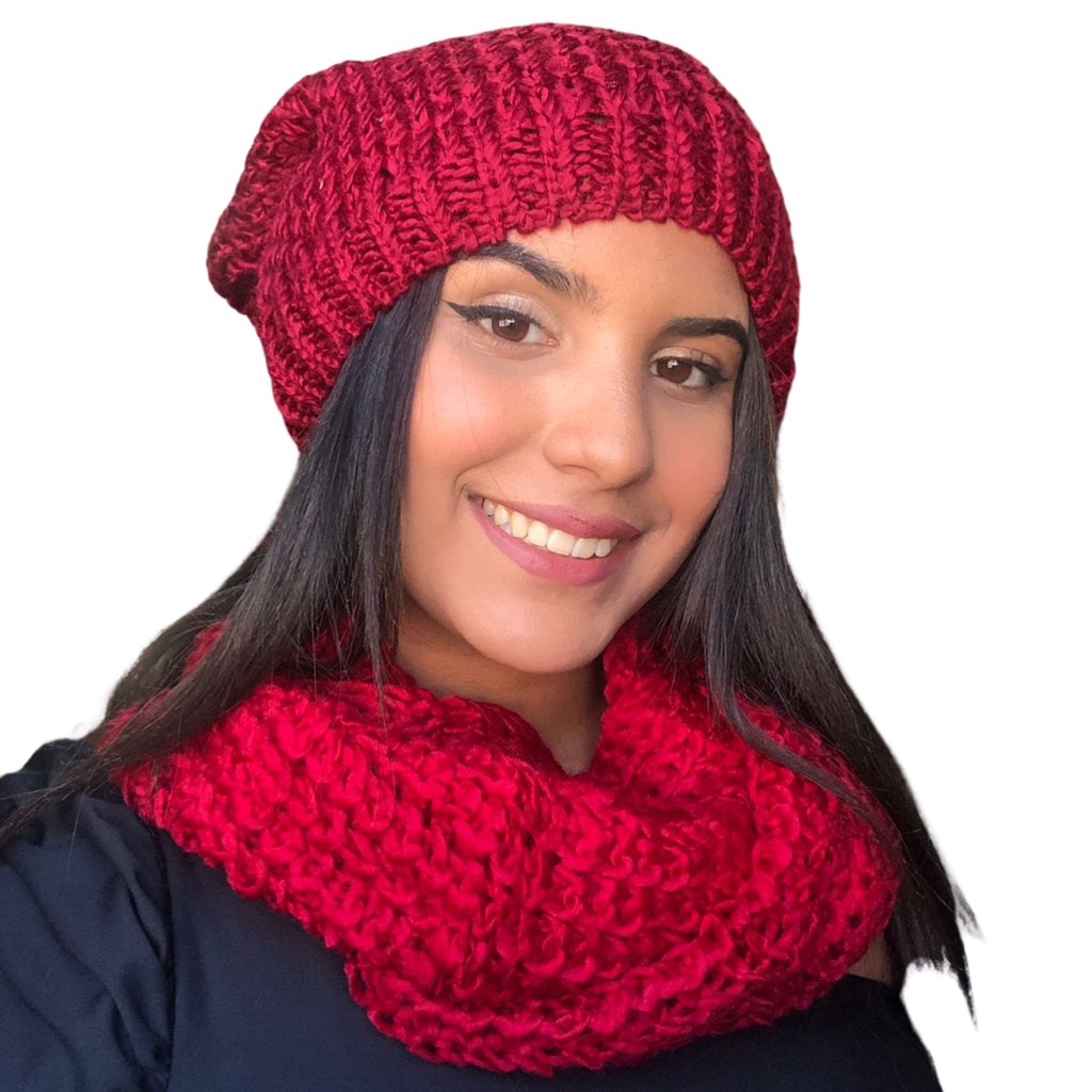 Touca E Gola De Lã Feminina Inverno Quentinha Pescoço
