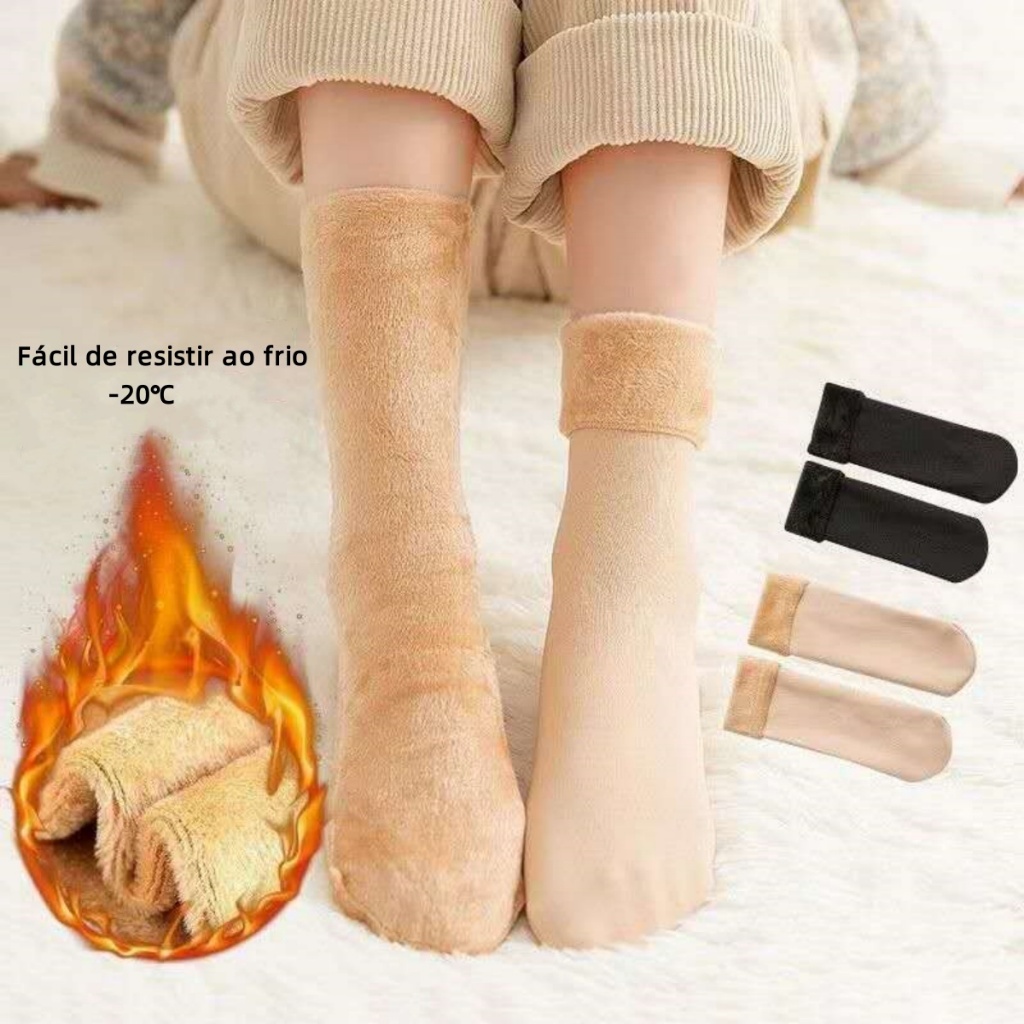 kit 6, 4, 3, 2, 1 Pares De Meia Térmica Feminina Flanelada Forrada Cano Longo 50cm - O MENOR PREÇO