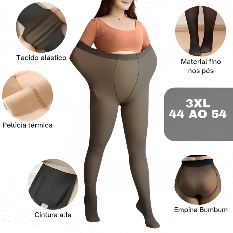 Meia-Calça Plus Size 3XL - Térmica Forrada Peluciada Translúcida De Lã Quente Feminina P/Inverno