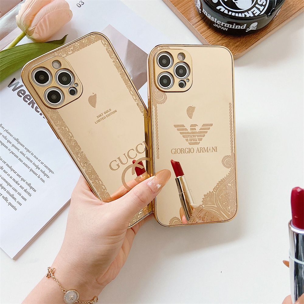 Estoque Pronto Capa De Celular De Luxo LOGO Com Banho De Ouro Compatível IPhone 13 12 11 Pro Max XS X 8 7 Plus Protetora