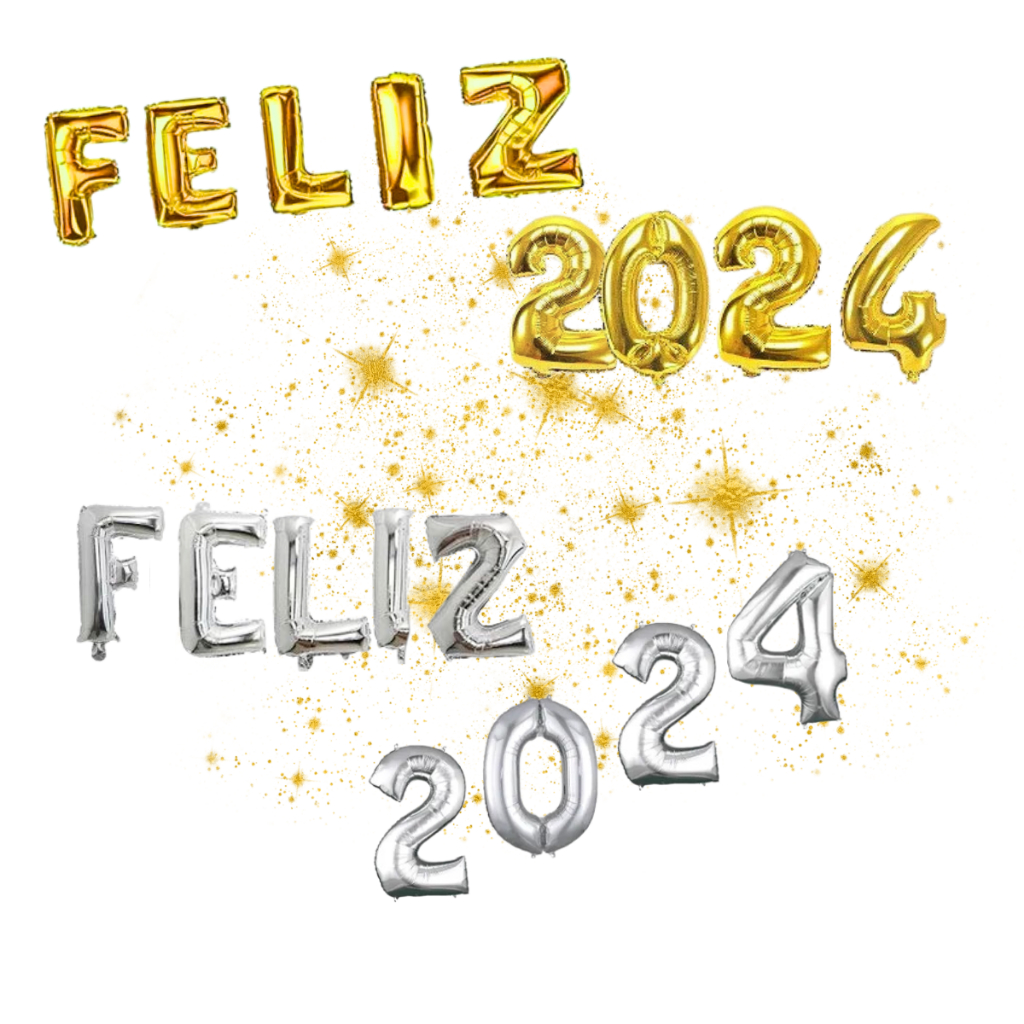 Balão Feliz 2024 Réveillon Ano Novo Letras Números Metalizado Dourado Prata