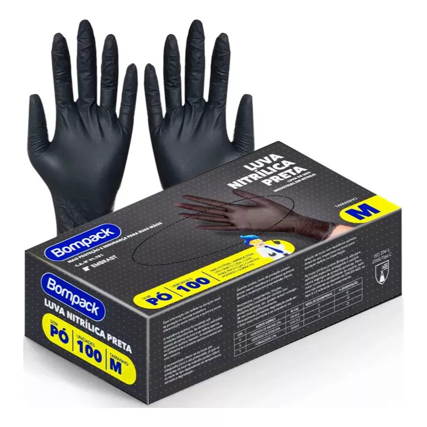 Kit 200 Luva Nitrilica Sem Pó Na Cor Preta Promoção