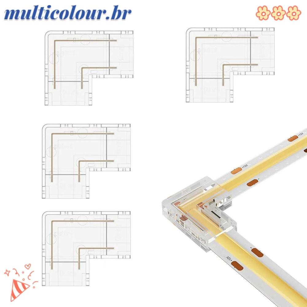 Conectores MULTICOLOUR COB LED , Canto Em Forma De L Transparente De Cobertura , Fita A Tira Para Luzes De CCT FCOB 5/8/10mm Conector De Pino Sem Solda 2/3/4