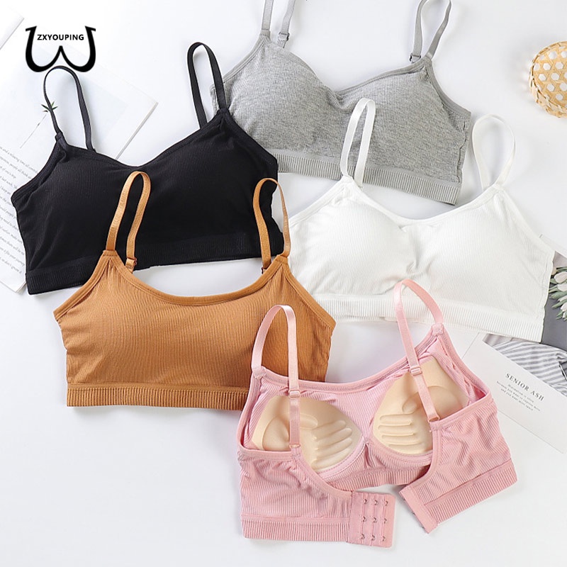 ZXYOUPING kit 3 Lindo sutiã push up De Algodão esportivo feminino sem aro Sem Costura com bojo Com Alças finas Ajustável,Sutiã Meninas top Academia Envoltórios Seios Roupa Íntima Costas