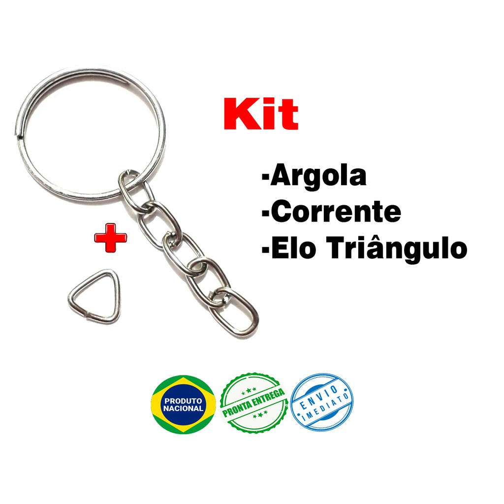 Argola para chaveiro + Corrente + Elo triangulo para Artesanato Kit 3 em 1