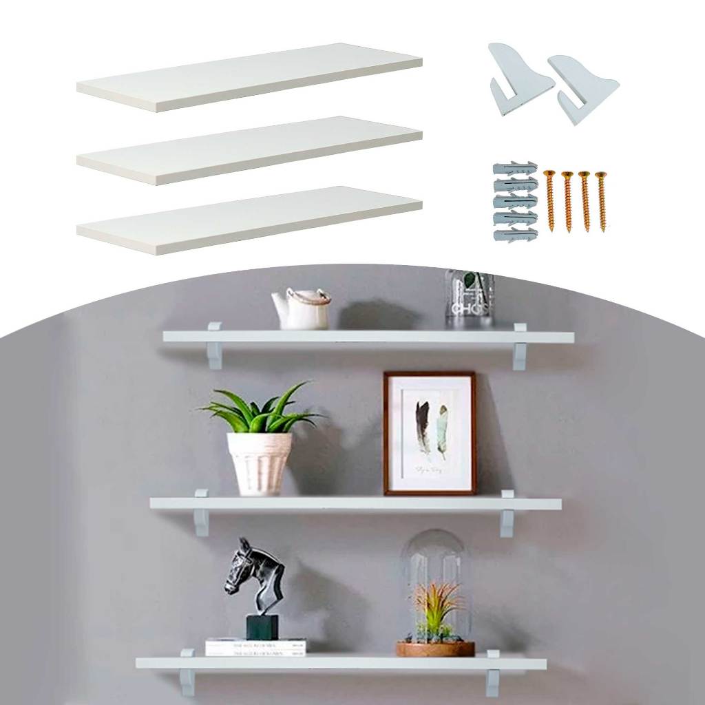 Prateleira Suspensa 60x20cm Invisível MDF Branco 3 Unidades