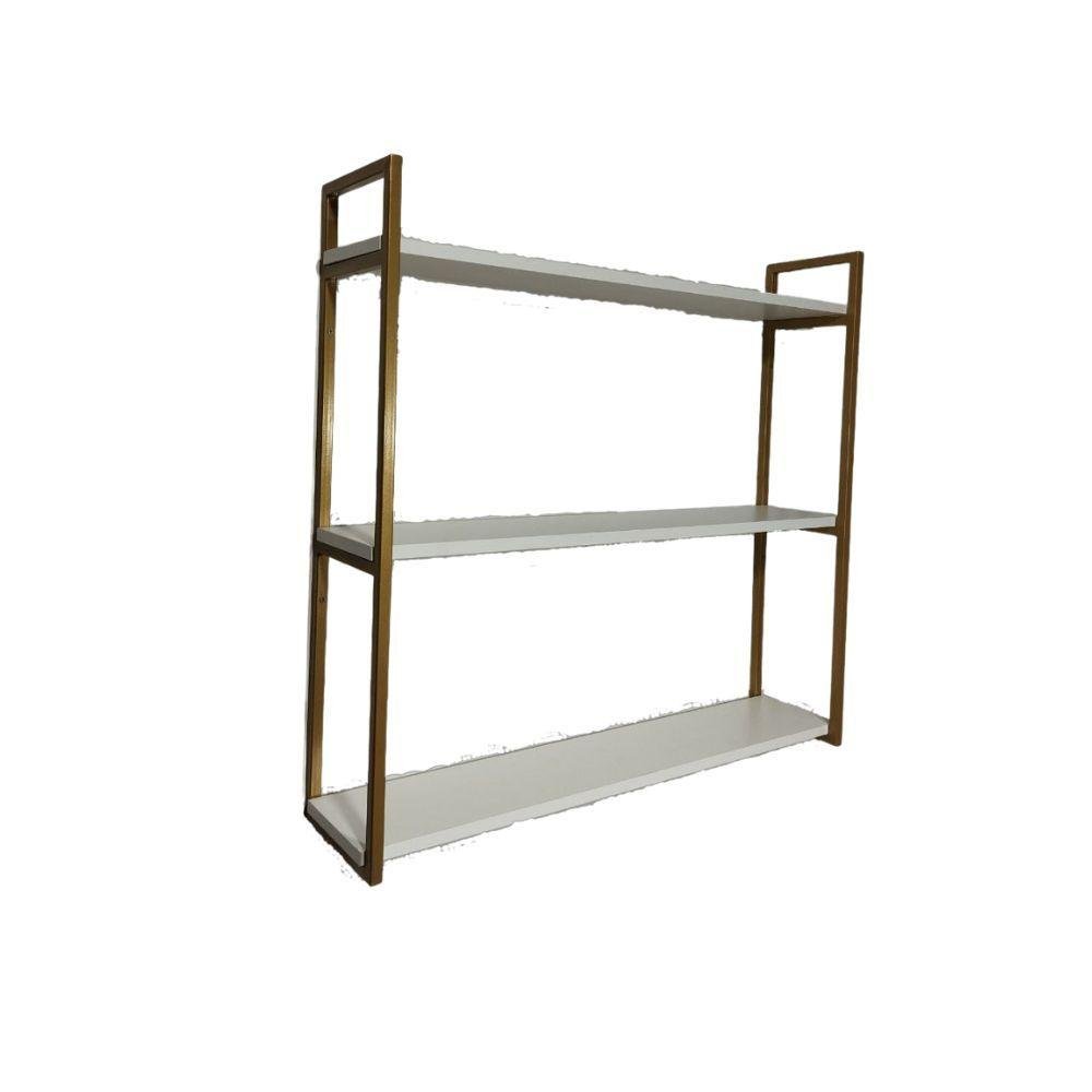 Prateleira Industrial 3 Níveis Dourado Mdf Branco