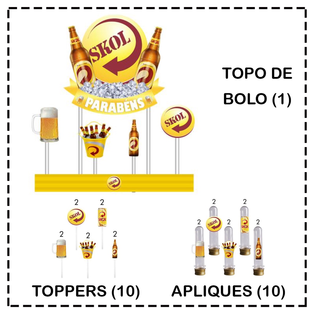 Topo de Bolo Skol + Toppers para doces + Apliques para Lembrancinhas