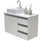 Gabinete para Banheiro Suspenso 80cm Alice com Balcão 2 Gavetas e Espelheira com Cuba Branca