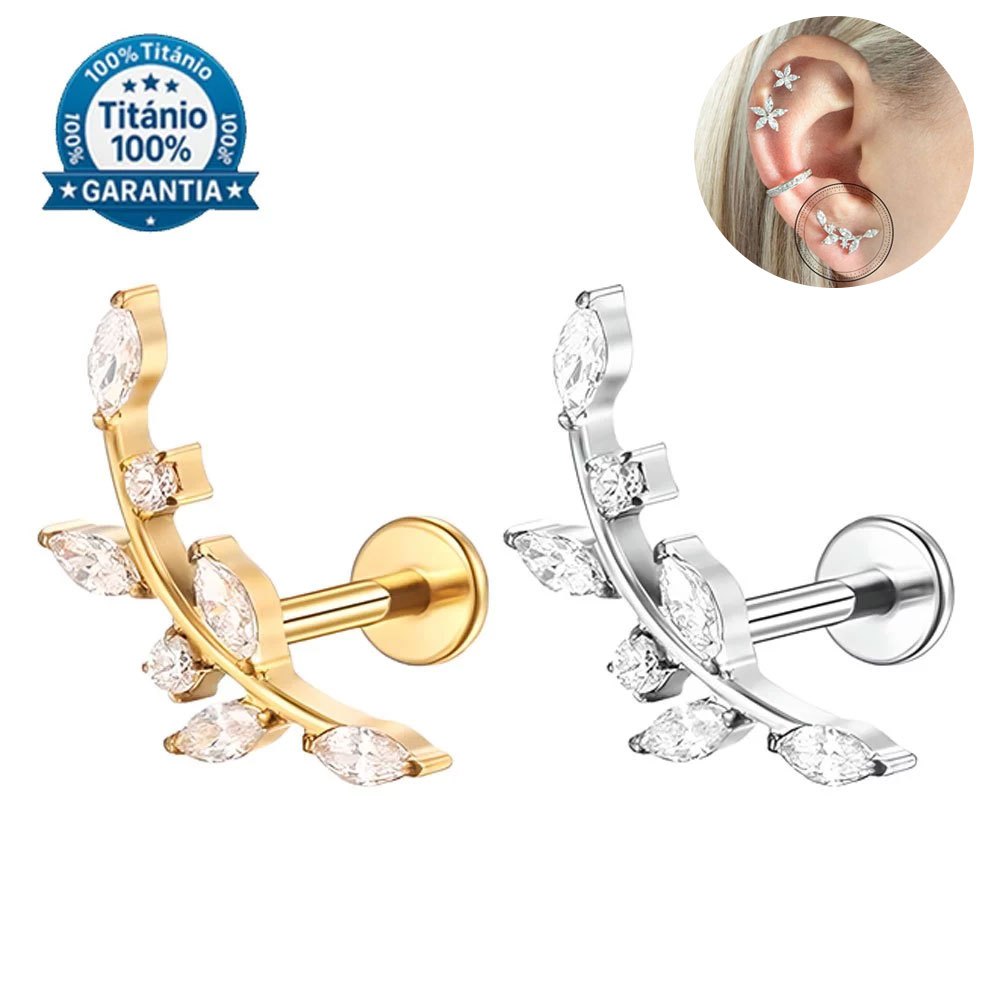 Piercing Helix Tragus Conch Boca-Medusa Labret Titânio Pvd Cluster Zircônias Cravejadas