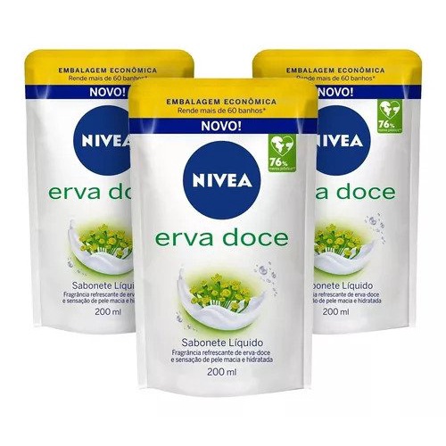 Kit Refil Sabonete Liquido Erva Doce NIVEA 200ml - 3 Unidades
