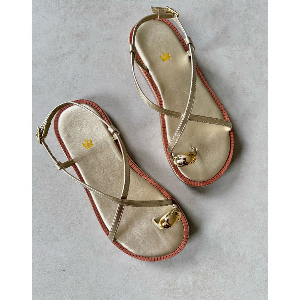 Sandália Feminina Rasteira Tiras Enfeite Dedo Metalizado Confortável Lançamento