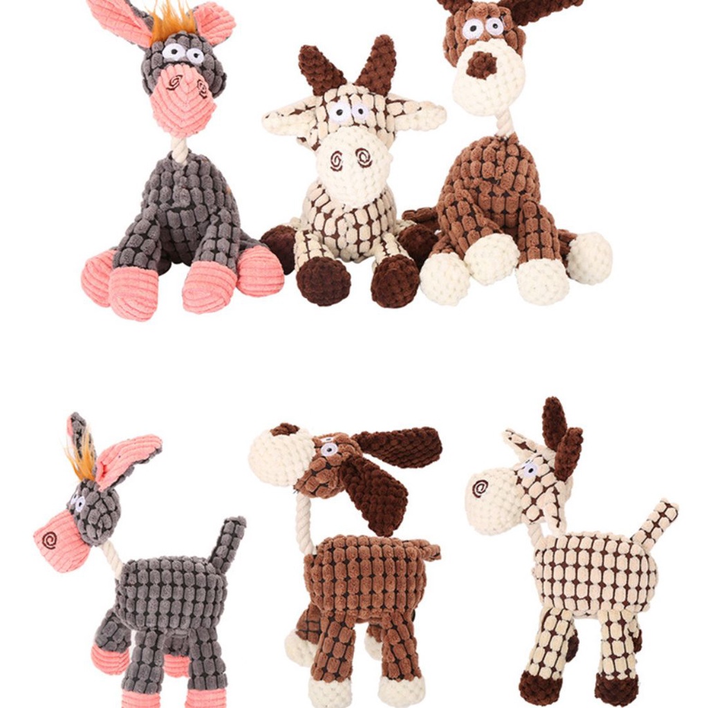 Brinquedo de Corda Burrinho Bichinho de Pelúcia para Cachorro Cães Pet Mordedor com Apito Som