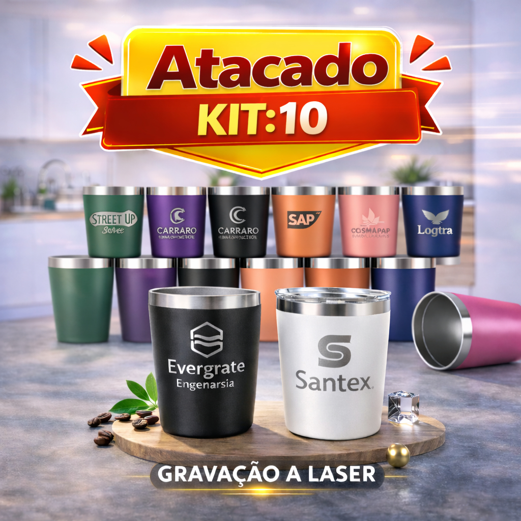 kit 10-20-30-40-50 copo Térmico Inox Personalizado a Laser
