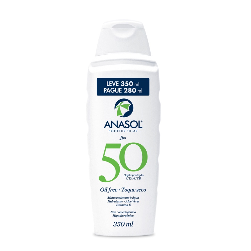 Protetor Solar Corporal Anasol Fps 50 Loção Oil Free Toque Seco com Aloe Vera e Vitamina E 350ml