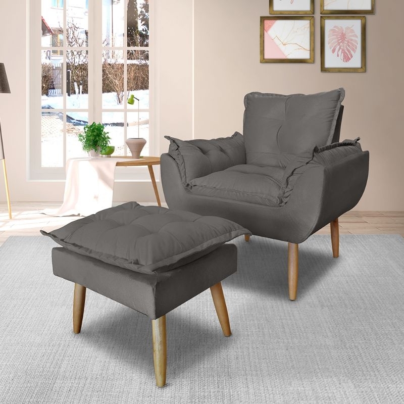 kit poltrona mais Puff opala deluxe em Suede cor cinza