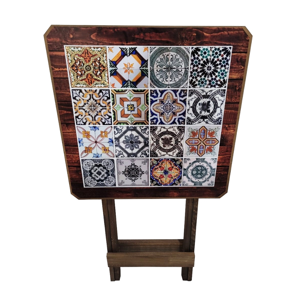 Mesa Dobravel Madeira Azulejo Português Quadrada Decoração Área Gourmet