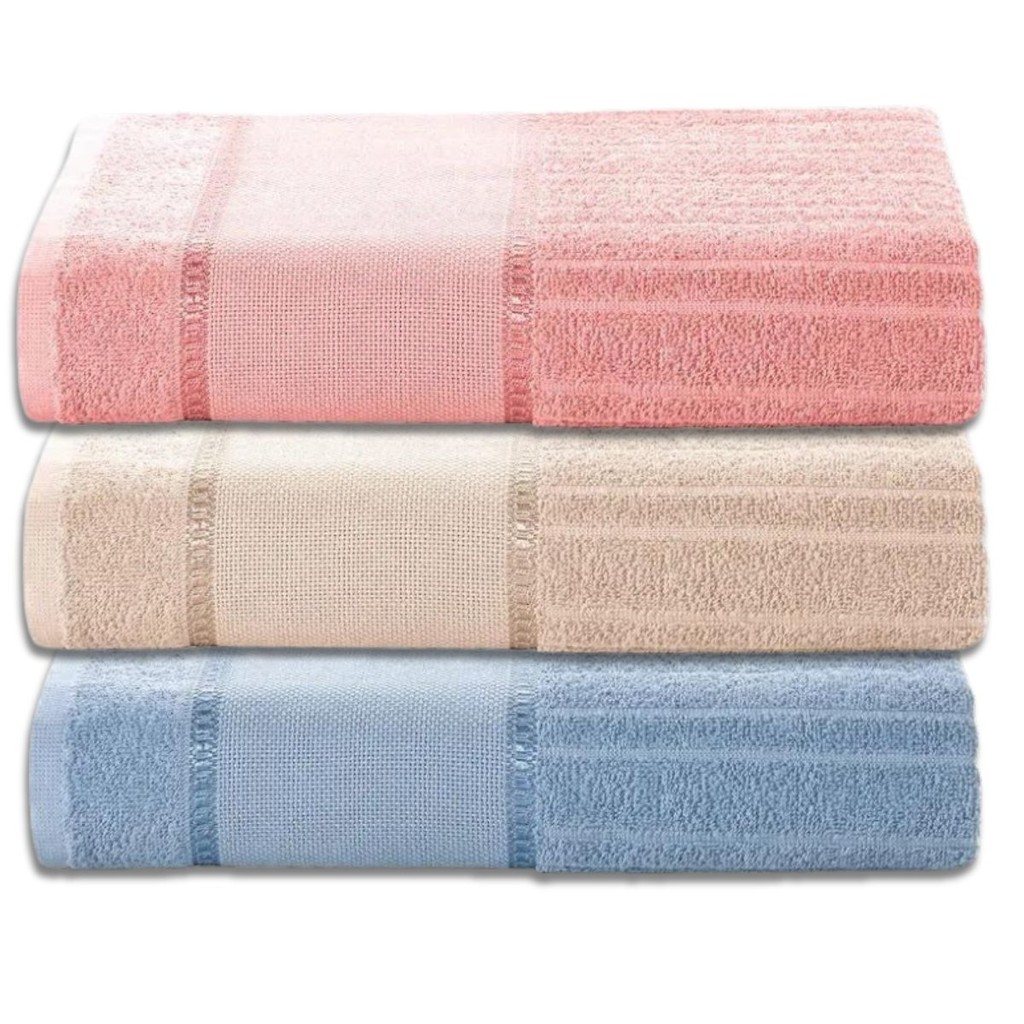 Kit 3 Toalhas de Banho Dohler Bella 70X140 cm - Toalha de Banho para Bordar Ponto Cruz