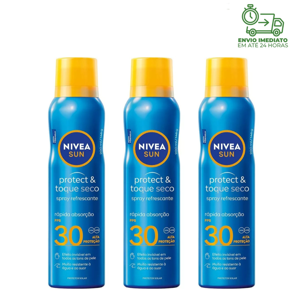 Kit 3 Protetor Solar NIVEA SUN Spray Protect & Toque Seco FPS 30 - 200ml
