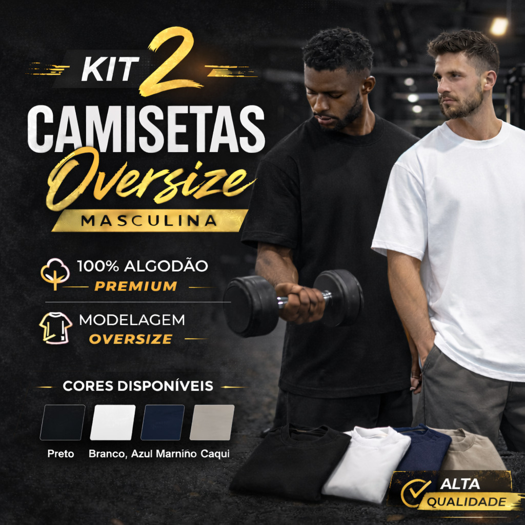 kit 2 Camisetas Oversized Premium Streetwear – Gola Alta | Estilo, Conforto e Versatilidade ,Camiseta Oversized Treino