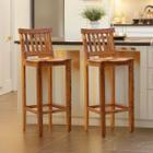 Kit 2 Banquetas Alta Decorativa Com Encosto Para Cozinha Balcão e Bistro Base De Madeira