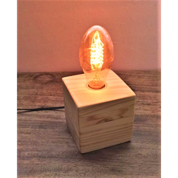 Abajour mini cubo em madeira de pinus com 10 x 10 cm