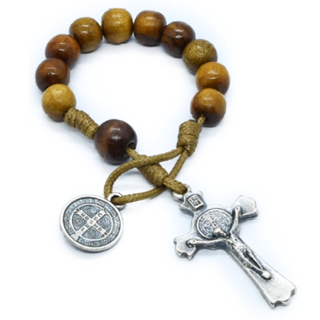 Terço Dezena De Mão Trançado Em Madeira Medalha de São Bento