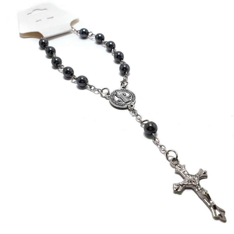Terço Dezena Para Carro Em Hematita São Bento Retrovisor Maçaneta De Porta