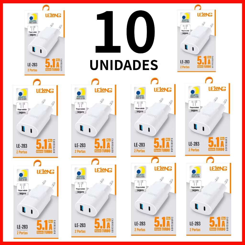 Atacado Kit 5 ou 10 Fonte Carregador Turbo 5.1A Com 2 Entradas USB e TIPO-C Charger Bivolt