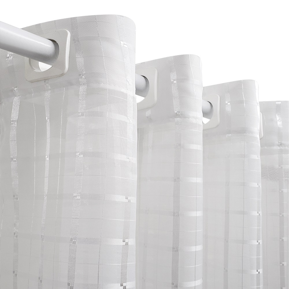 Cortina de Cozinha Voal Transparente Janela Branca Xadrez 2,20 x 1,40 Básica Tecido Leve Ilhós Cromado