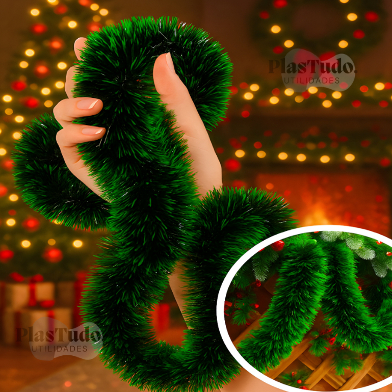 Kit 6 Metros De Festão Enfeite Arvore De Natal 9cm Decoração Natalina Verde Cheio