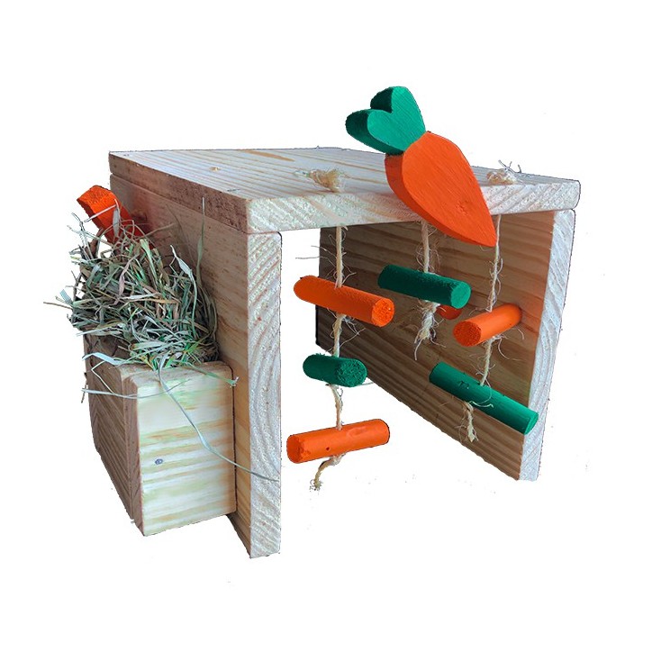 Toca playground G com porta feno para roedores, coelho, chichila, porquinho da índia