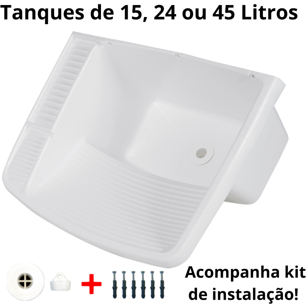 Tanque Plástico Branco 28 Litros + Torneira Tanque/Máquina + Sifão Longo 1,20m