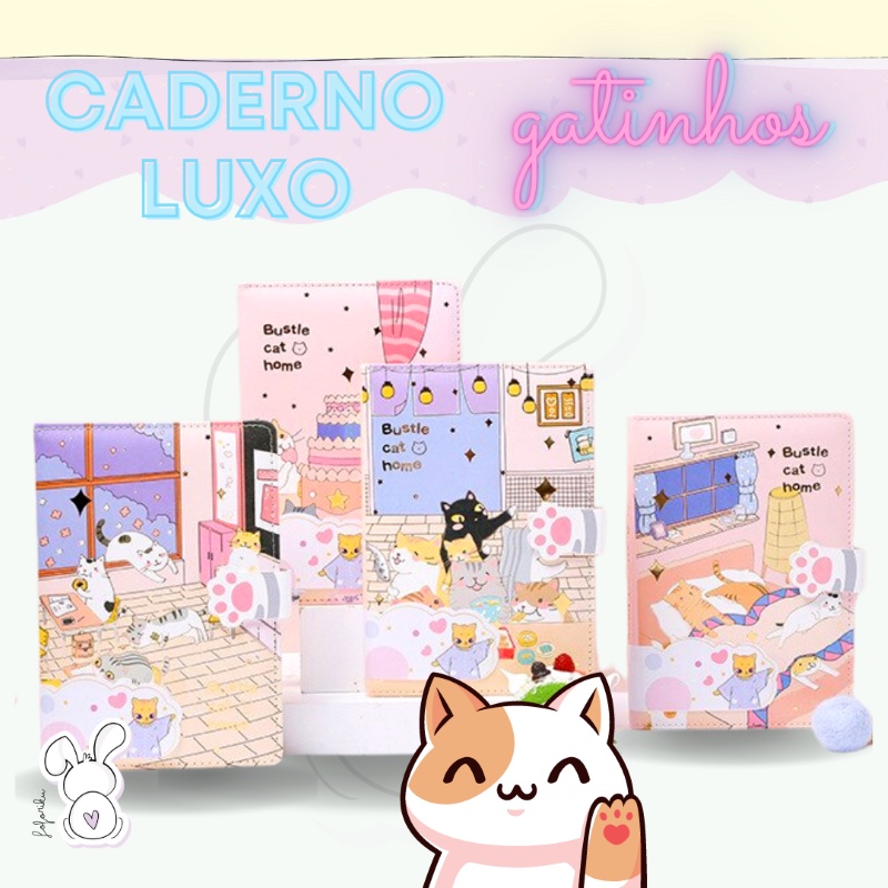Caderno Gatinho Luxo Fofo Brochura Fecho Magnético Kawaii