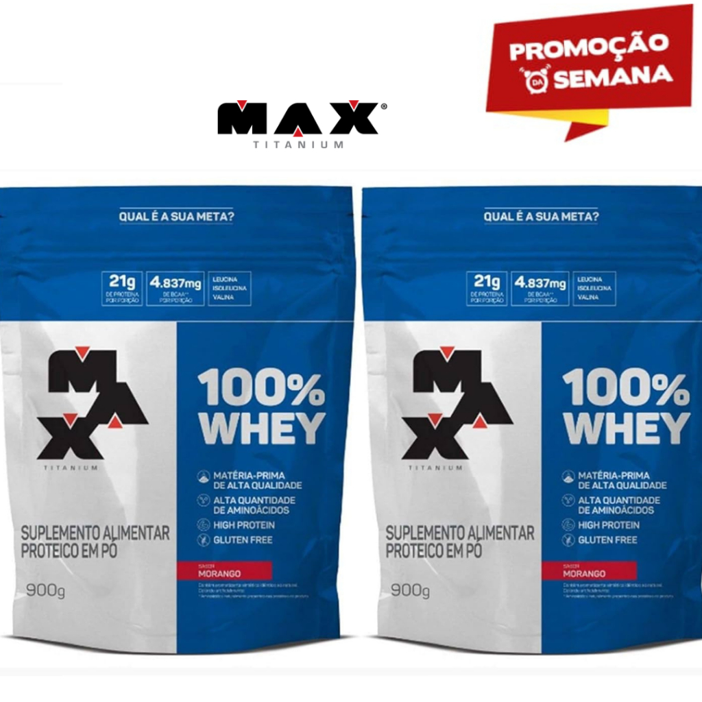kit 2x Whey Protein 100%pure Max Titanium 900g Baixo Carbo