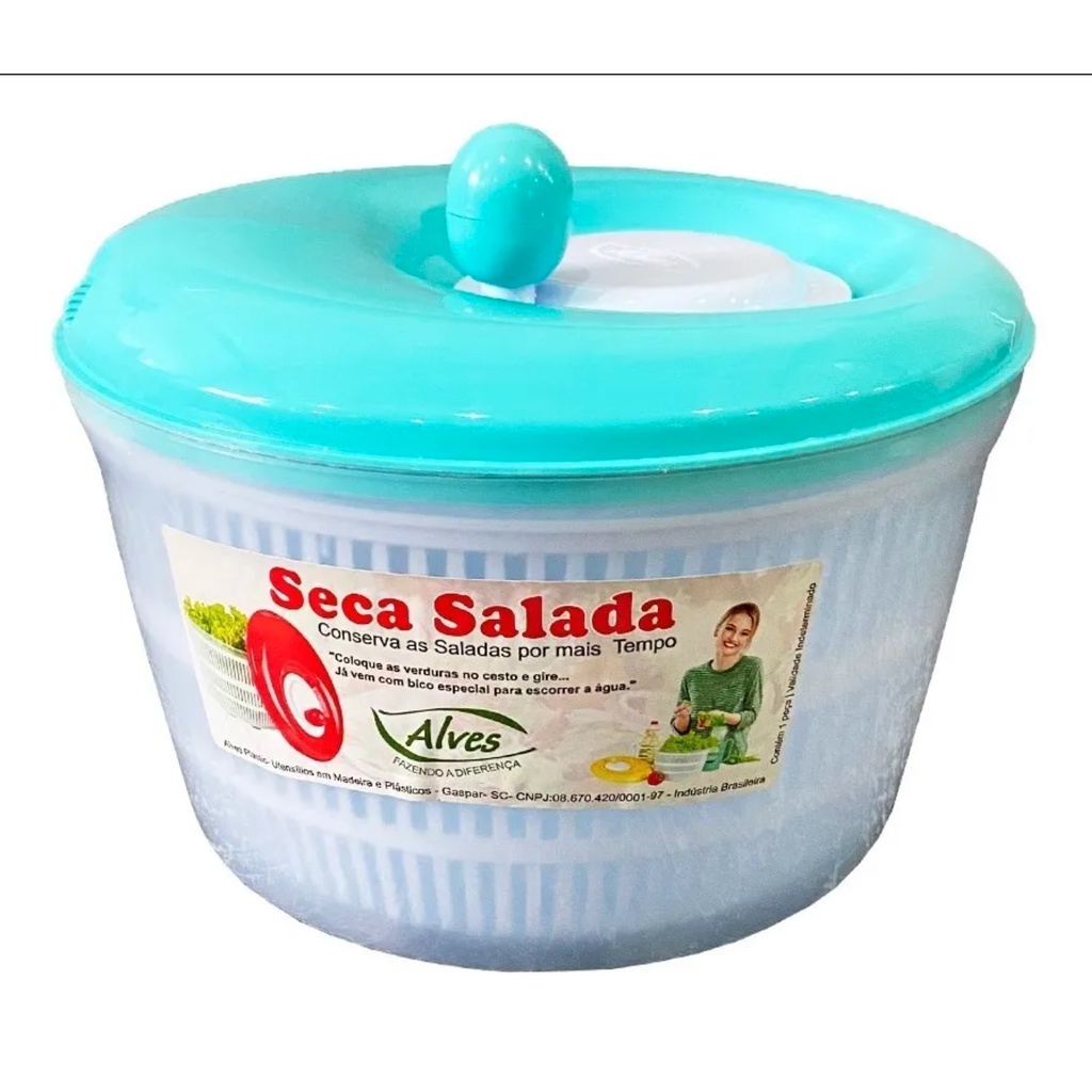 Centrífuga Seca Salada Manual Grande 4 Litros Secadora de Verduras Saladas e Folhas Prática Fácil de Usar Plasútil
