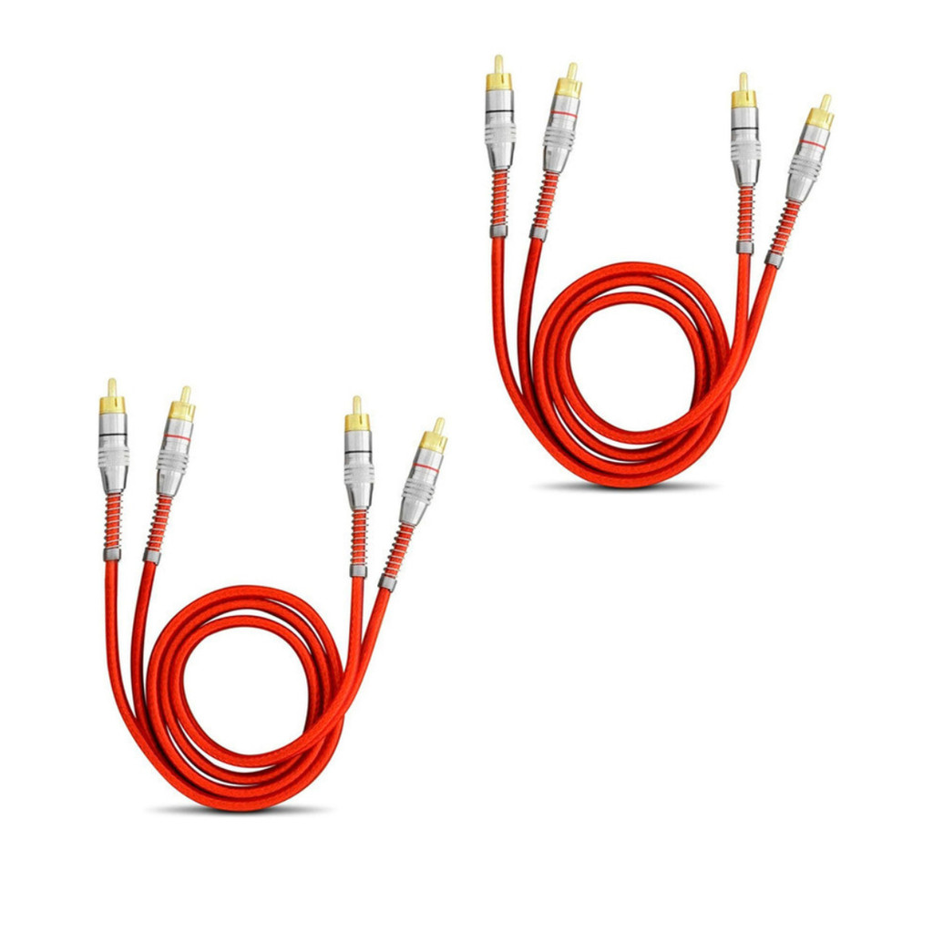 Kit 2 Cabos Rca De 1 Metro Blindado Tech One Svart Vermelho Conector Ouro Som Automotivo