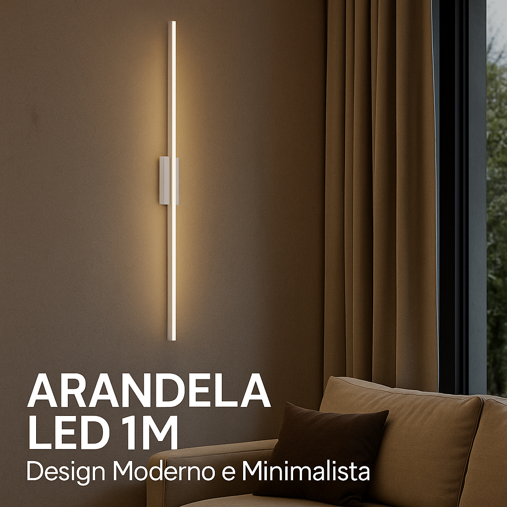 Arandela LED 1 Metro Branca 10W 3000K Bivolt – Luminária de Parede Interna Moderna Aurora