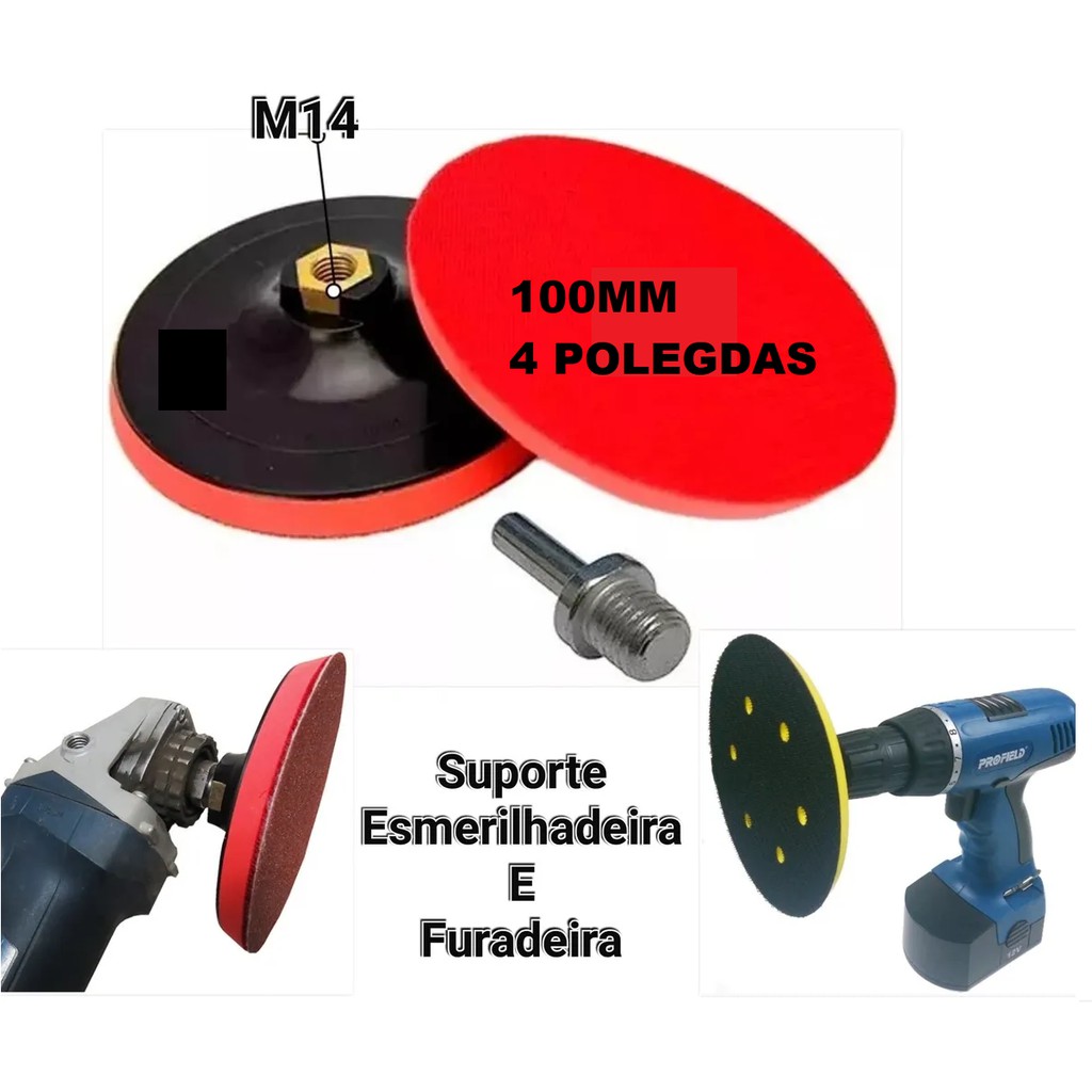 Suporte Para Lixa Com Velcro Boina 100mm Esmerilhadeira M14