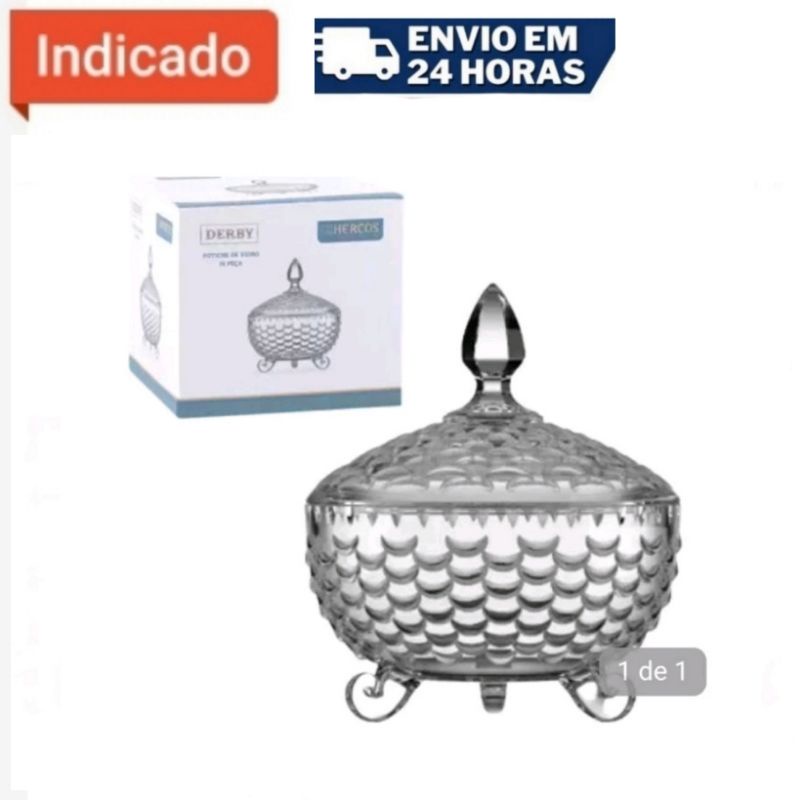 Bomboniere Baleiro de Vidro Doces Luxo Potiche Mesa Decorativo 600ml c/ Tampa