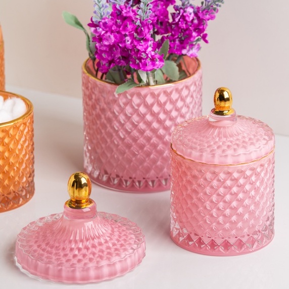 Potiche Decorativo Pote de Vidro Rosa Diversos Tamanhos Royal Decor Wolff
