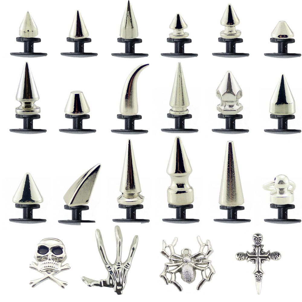 Vários Desenhos De Espigões De Prata E Rebites De Crânio Para Acessórios Crocs
