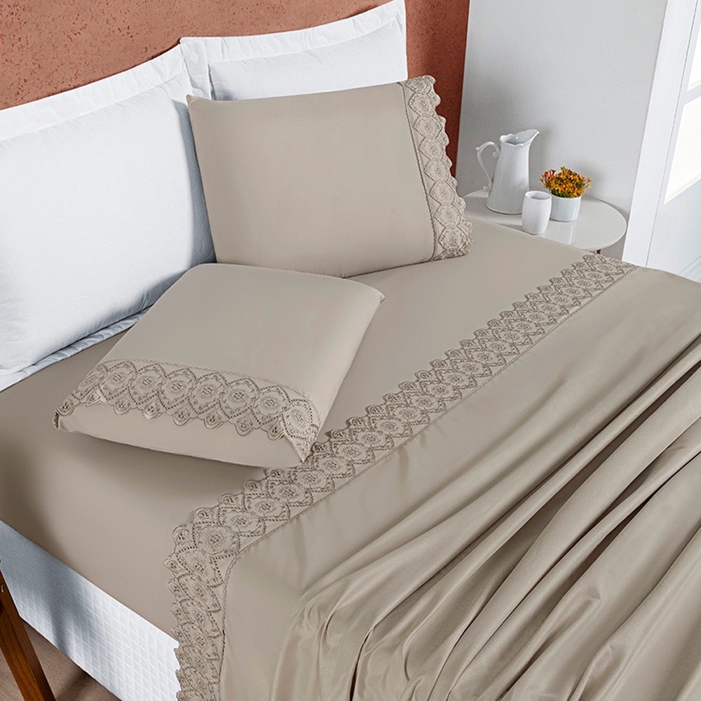 Jogo de Lençol Casal 4 Peças micro percal 400 fios acetinado