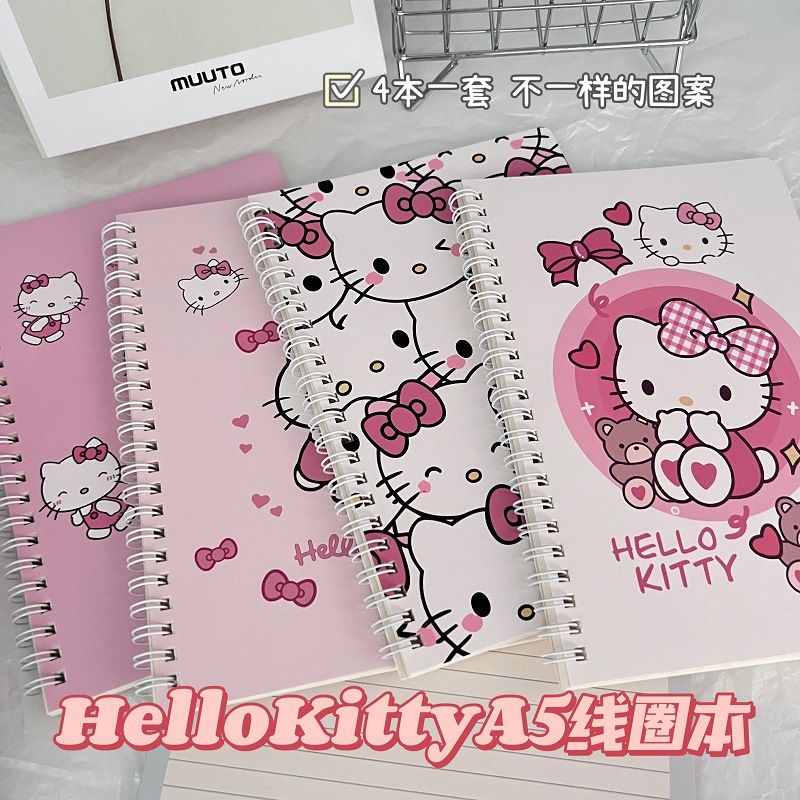 4 Livros / Set Hello Kitty Caderno de Anotações Hello Kitty A5 Caderno de Anotações em Bobina Escrita Horizontal Linha Horizontal Caderno de Anotações