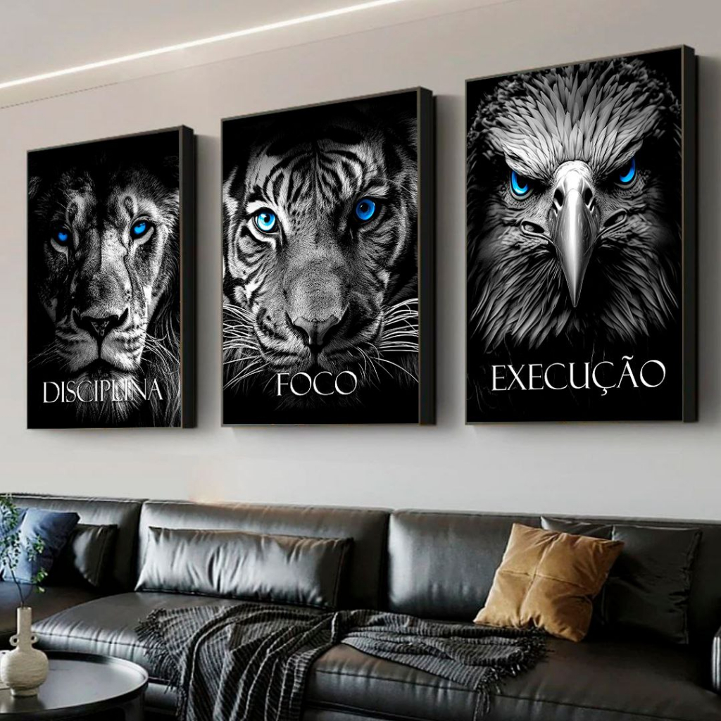 Quadro Decorativo Motivação Foco Execução Disciplina Águia Lobo Leão Rei Sala Quarto Escritório Exclusivo Lançamento Alta Resolução