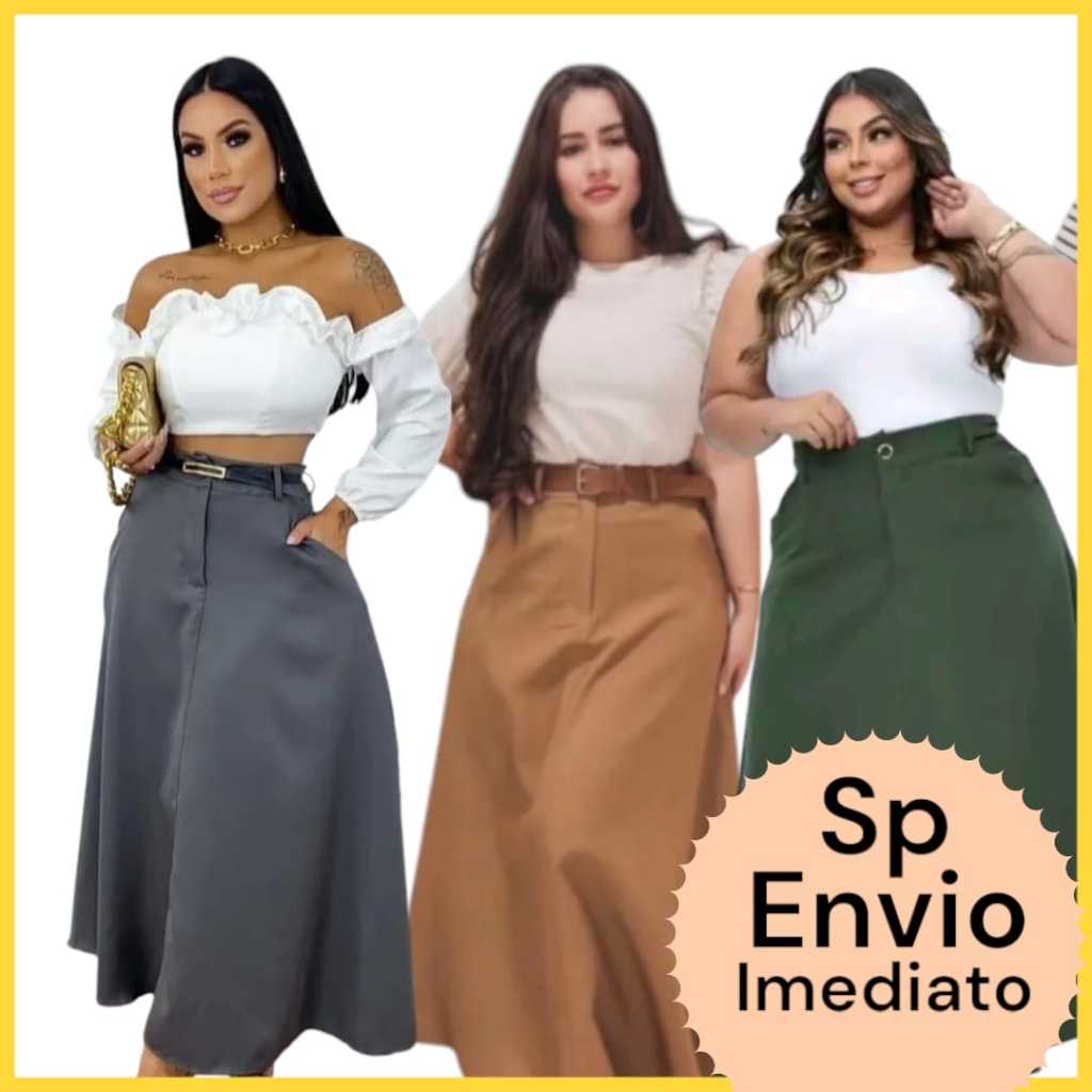 Short Saia Plus Size Short Saia Alfaiataria com Cinto Plu Size Tamanho do 36 ao 58