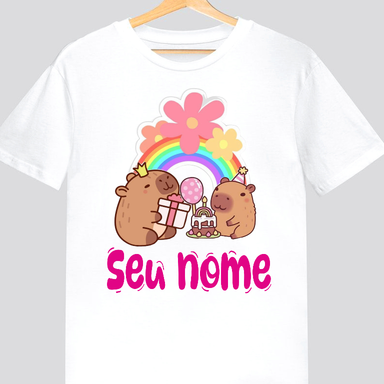 Camiseta Capivara Aniversário Parabéns Com Nome Personalizado Blusa Camisa