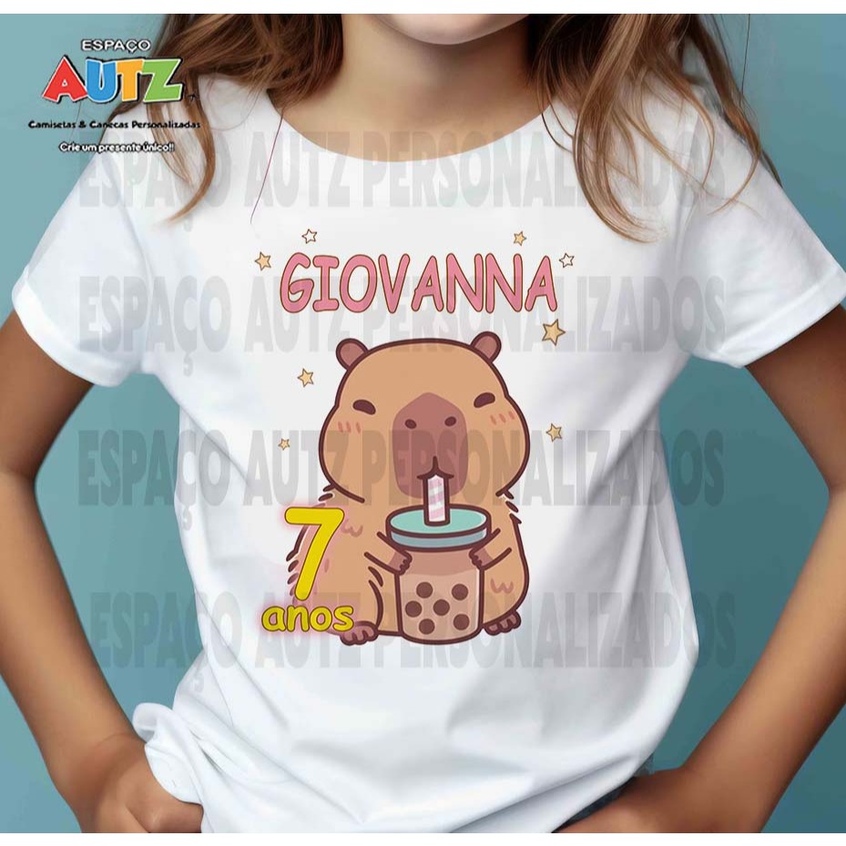 Camiseta Capivara infantil menina personalizada com nome e idade - milk shake