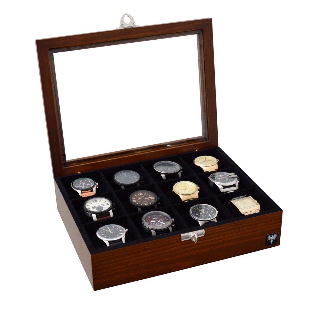 Porta Relógio Total Luxo Estojo Madeira Maciça 12 Nichos