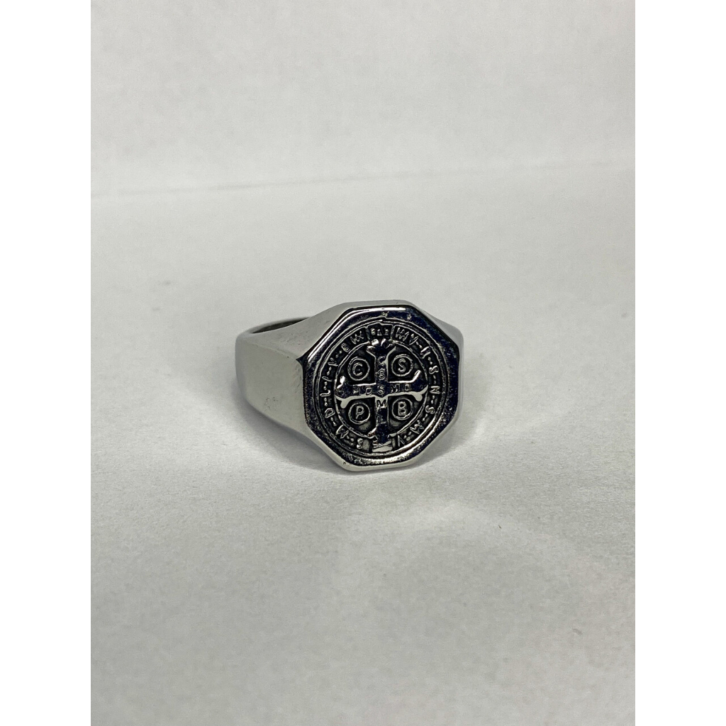 Anel Masculino Cruz Sagrada de São Bento Aço em Aço Inoxidável